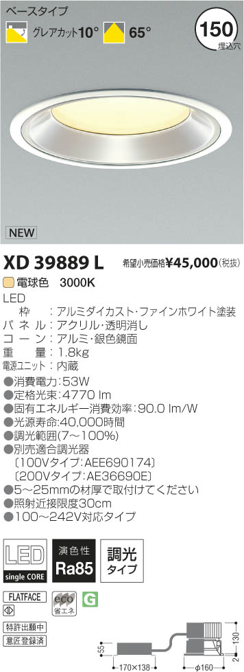 ¥³¥¤¥º¥ß¾ÈÌÀ KOIZUMI LED¥À¥¦¥ó¥é¥¤¥È XD39889L