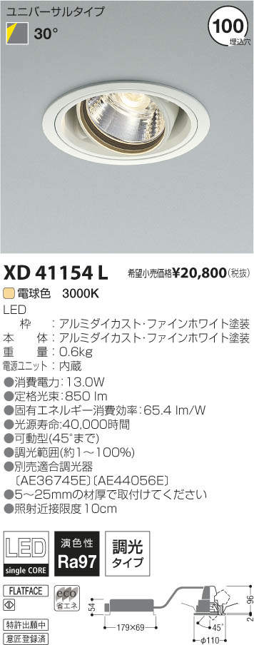 ¥³¥¤¥º¥ß¾ÈÌÀ KOIZUMI LED¥æ¥Ë¥Ð¡¼¥µ¥ë¥À¥¦¥ó¥é¥¤¥È XD41154L