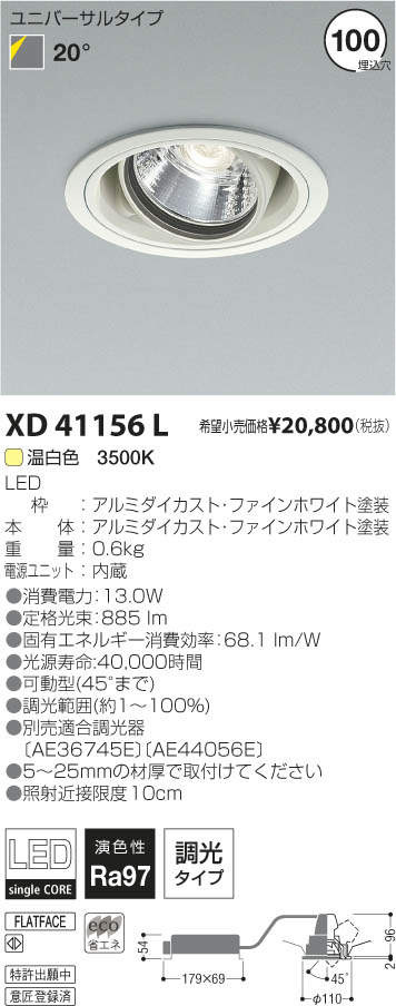 ¥³¥¤¥º¥ß¾ÈÌÀ KOIZUMI LED¥æ¥Ë¥Ð¡¼¥µ¥ë¥À¥¦¥ó¥é¥¤¥È XD41156L