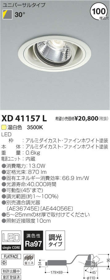 ¥³¥¤¥º¥ß¾ÈÌÀ KOIZUMI LED¥æ¥Ë¥Ð¡¼¥µ¥ë¥À¥¦¥ó¥é¥¤¥È XD41157L