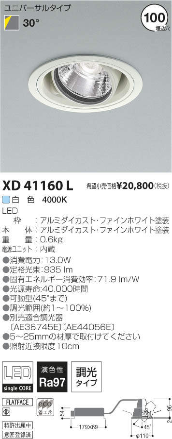 ¥³¥¤¥º¥ß¾ÈÌÀ KOIZUMI LED¥æ¥Ë¥Ð¡¼¥µ¥ë¥À¥¦¥ó¥é¥¤¥È XD41160L