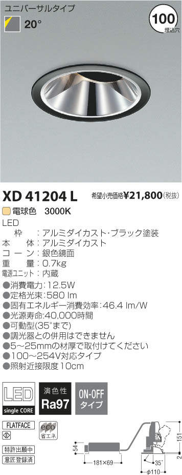 ¥³¥¤¥º¥ß¾ÈÌÀ KOIZUMI LED ¥À¥¦¥ó¥é¥¤¥È XD41204L