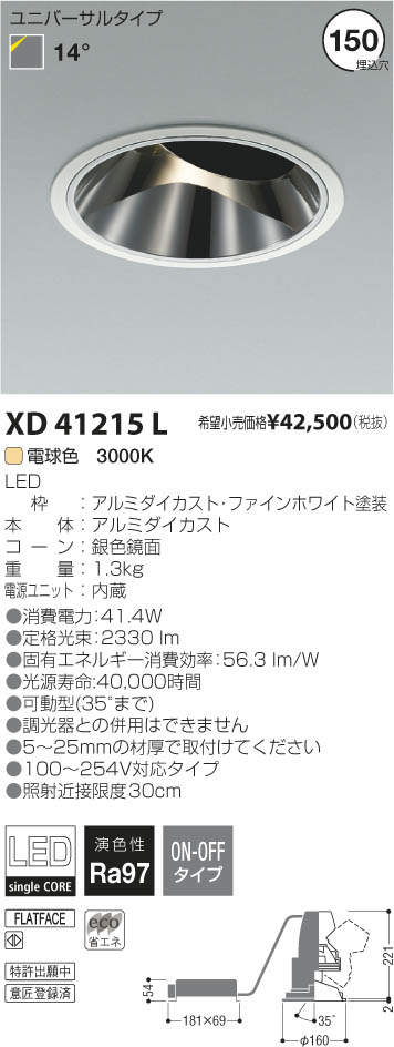 ¥³¥¤¥º¥ß¾ÈÌÀ KOIZUMI LED ¥À¥¦¥ó¥é¥¤¥È XD41215L