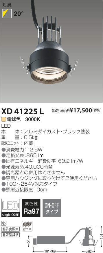 ¥³¥¤¥º¥ß¾ÈÌÀ KOIZUMI LED ¥À¥¦¥ó¥é¥¤¥È XD41225L