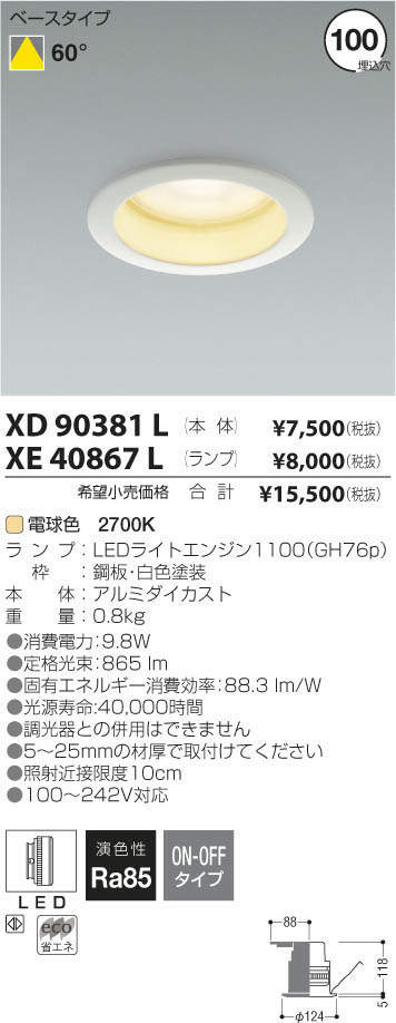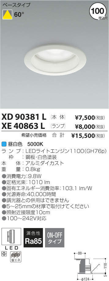 ¥³¥¤¥º¥ß¾ÈÌÀ KOIZUMI LED ¥À¥¦¥ó¥é¥¤¥È XD90381L