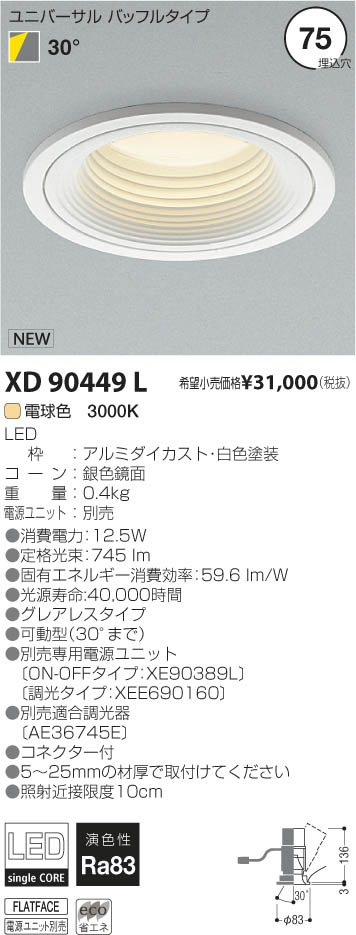 ¥³¥¤¥º¥ß¾ÈÌÀ KOIZUMI LED¥æ¥Ë¥Ð¡¼¥µ¥ë¥À¥¦¥ó¥é¥¤¥È XD90449L