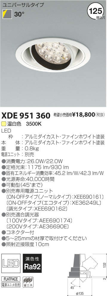 ¥³¥¤¥º¥ß¾ÈÌÀ KOIZUMI LED¥æ¥Ë¥Ð¡¼¥µ¥ë¥À¥¦¥ó¥é¥¤¥È XDE951360