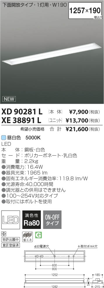¥³¥¤¥º¥ß¾ÈÌÀ KOIZUMI LED¥æ¥Ë¥Ã¥È XE38891L