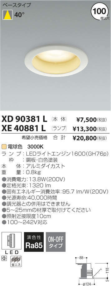 ¥³¥¤¥º¥ß¾ÈÌÀ KOIZUMI LED ¥À¥¦¥ó¥é¥¤¥È XE40881L