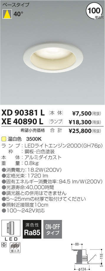 ¥³¥¤¥º¥ß¾ÈÌÀ KOIZUMI LED ¥À¥¦¥ó¥é¥¤¥È XE40890L