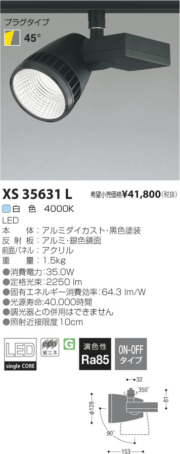 ¥³¥¤¥º¥ß¾ÈÌÀ KOIZUMI LED¥¹¥Ý¥Ã¥È¥é¥¤¥È¡Ê¥×¥é¥°¡Ë XS35631L