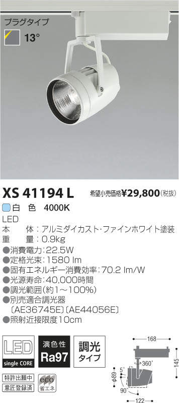 ¥³¥¤¥º¥ß¾ÈÌÀ KOIZUMI LED¥¹¥Ý¥Ã¥È¥é¥¤¥È XS41194L
