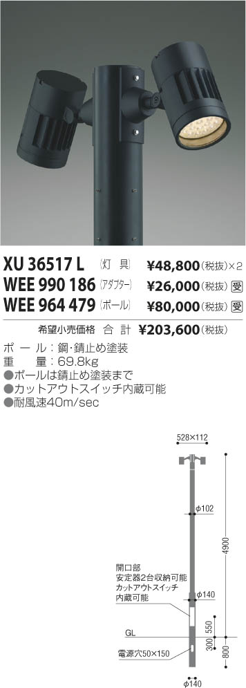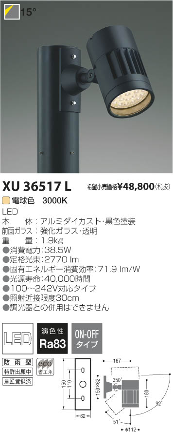 ¥³¥¤¥º¥ß¾ÈÌÀ KOIZUMI LED¥¢¥¦¥È¥É¥¢¥¹¥Ý¥Ã¥È¥é¥¤¥È XU36517L