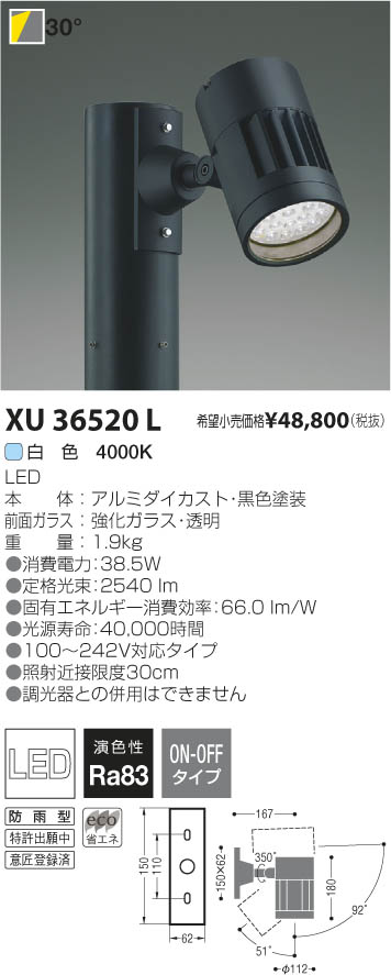 ¥³¥¤¥º¥ß¾ÈÌÀ KOIZUMI LED¥¢¥¦¥È¥É¥¢¥¹¥Ý¥Ã¥È¥é¥¤¥È XU36520L