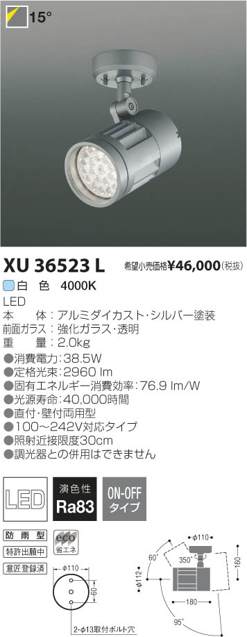 ¥³¥¤¥º¥ß¾ÈÌÀ KOIZUMI LED¥¢¥¦¥È¥É¥¢¥¹¥Ý¥Ã¥È¥é¥¤¥È XU36523L