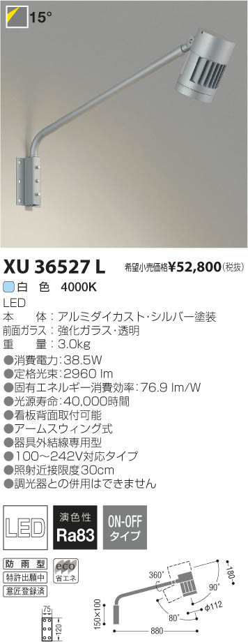 ¥³¥¤¥º¥ß¾ÈÌÀ KOIZUMI LED¥¢¥¦¥È¥É¥¢¥¢¡¼¥à¥¹¥Ý¥Ã¥È¥é¥¤¥È XU36527L