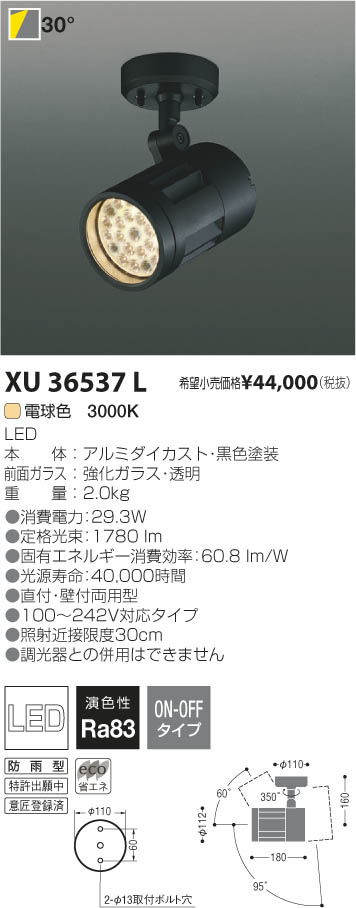 ¥³¥¤¥º¥ß¾ÈÌÀ KOIZUMI LED¥¢¥¦¥È¥É¥¢¥¹¥Ý¥Ã¥È¥é¥¤¥È XU36537L