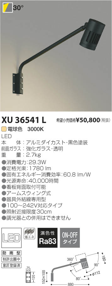 ¥³¥¤¥º¥ß¾ÈÌÀ KOIZUMI LED¥¢¥¦¥È¥É¥¢¥¢¡¼¥à¥¹¥Ý¥Ã¥È¥é¥¤¥È XU36541L