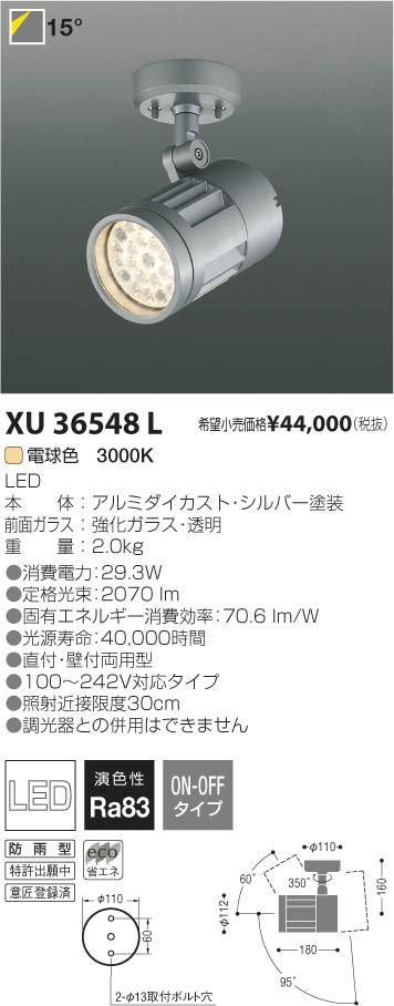 ¥³¥¤¥º¥ß¾ÈÌÀ KOIZUMI LED¥¢¥¦¥È¥É¥¢¥¹¥Ý¥Ã¥È¥é¥¤¥È XU36548L
