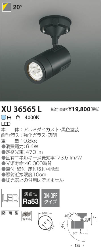 ¥³¥¤¥º¥ß¾ÈÌÀ KOIZUMI LED¥¢¥¦¥È¥É¥¢¥¹¥Ý¥Ã¥È¥é¥¤¥È XU36565L