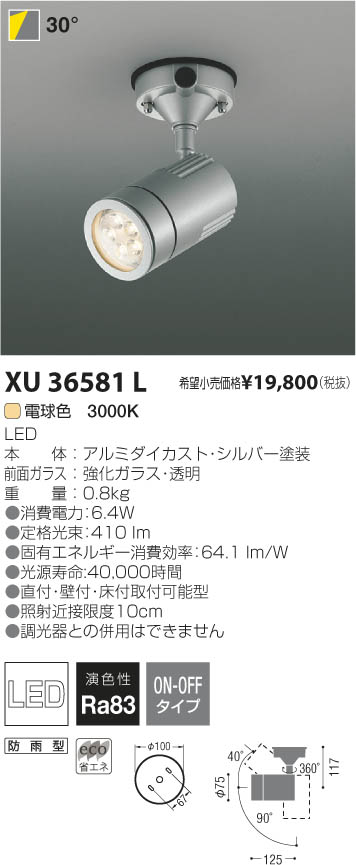 ¥³¥¤¥º¥ß¾ÈÌÀ KOIZUMI LED¥¢¥¦¥È¥É¥¢¥¹¥Ý¥Ã¥È¥é¥¤¥È XU36581L