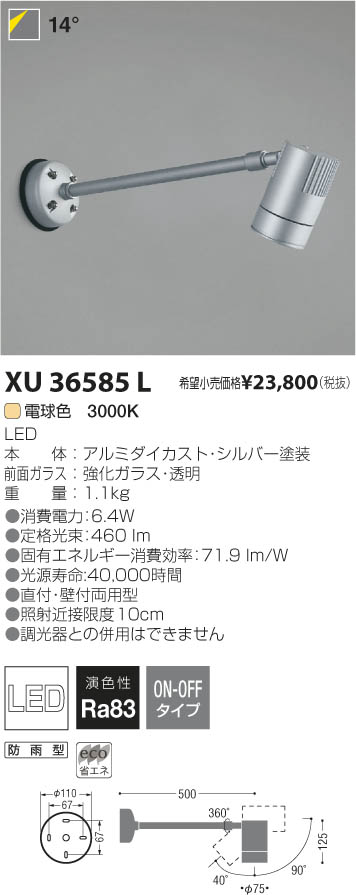 ¥³¥¤¥º¥ß¾ÈÌÀ KOIZUMI LED¥¢¥¦¥È¥É¥¢¥¢¡¼¥à¥¹¥Ý¥Ã¥È¥é¥¤¥È XU36585L