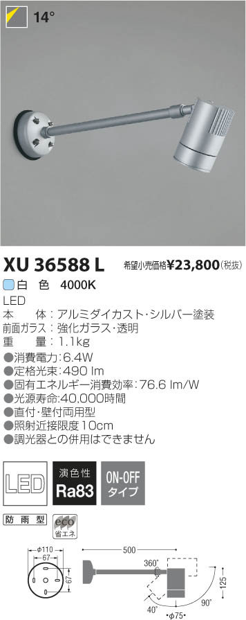 ¥³¥¤¥º¥ß¾ÈÌÀ KOIZUMI LED¥¢¥¦¥È¥É¥¢¥¢¡¼¥à¥¹¥Ý¥Ã¥È¥é¥¤¥È XU36588L