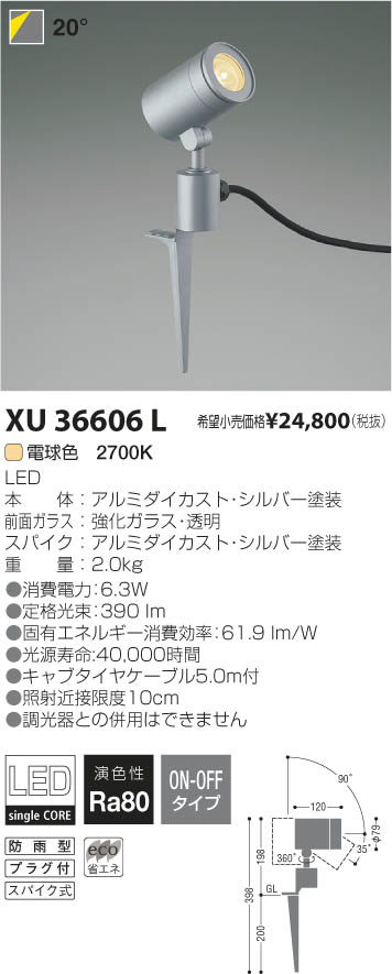 ¥³¥¤¥º¥ß¾ÈÌÀ KOIZUMI LED¥¢¥¦¥È¥É¥¢¥¹¥Ñ¥¤¥¯¥¹¥Ý¥Ã¥È¥é¥¤¥È XU36606L