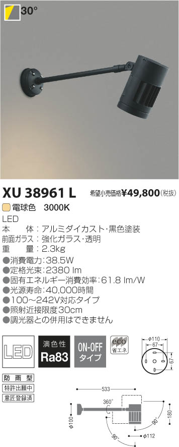¥³¥¤¥º¥ß¾ÈÌÀ KOIZUMI LED¥¢¥¦¥È¥É¥¢¥¢¡¼¥à¥¹¥Ý¥Ã¥È¥é¥¤¥È XU38961L