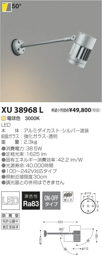 ¥³¥¤¥º¥ß¾ÈÌÀ KOIZUMI LED¥¢¥¦¥È¥É¥¢¥¢¡¼¥à¥¹¥Ý¥Ã¥È¥é¥¤¥È XU38968L
