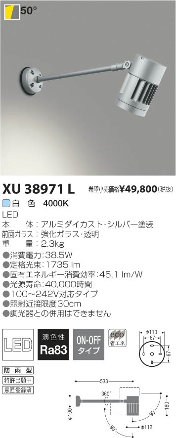 ¥³¥¤¥º¥ß¾ÈÌÀ KOIZUMI LED¥¢¥¦¥È¥É¥¢¥¢¡¼¥à¥¹¥Ý¥Ã¥È¥é¥¤¥È XU38971L