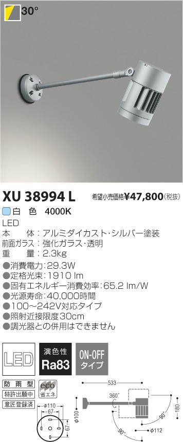 ¥³¥¤¥º¥ß¾ÈÌÀ KOIZUMI LED¥¢¥¦¥È¥É¥¢¥¢¡¼¥à¥¹¥Ý¥Ã¥È¥é¥¤¥È XU38994L