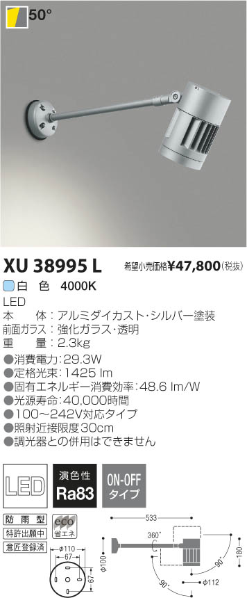 ¥³¥¤¥º¥ß¾ÈÌÀ KOIZUMI LED¥¢¥¦¥È¥É¥¢¥¢¡¼¥à¥¹¥Ý¥Ã¥È¥é¥¤¥È XU38995L