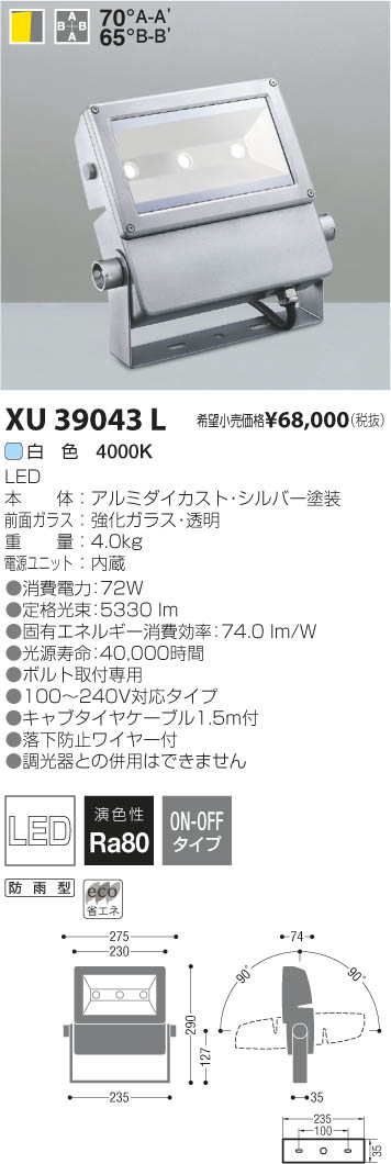 ¥³¥¤¥º¥ß¾ÈÌÀ KOIZUMI LED¥¢¥¦¥È¥É¥¢¥¹¥Ý¥Ã¥È¥é¥¤¥È XU39043L