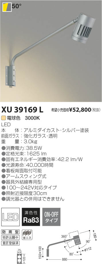 ¥³¥¤¥º¥ß¾ÈÌÀ KOIZUMI LED¥¢¥¦¥È¥É¥¢¥¢¡¼¥à¥¹¥Ý¥Ã¥È¥é¥¤¥È XU39169L