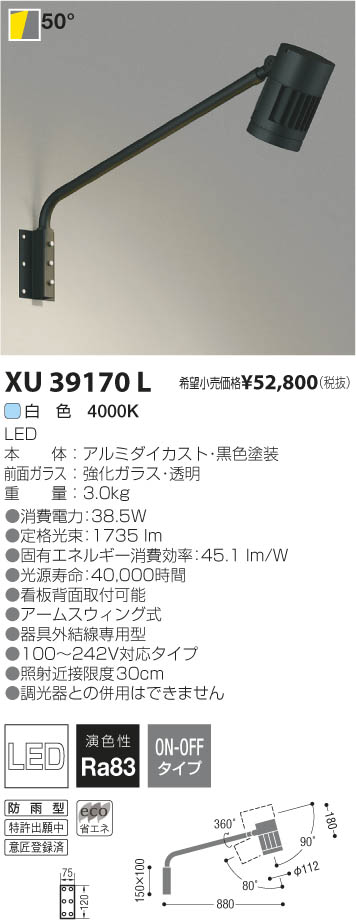 ¥³¥¤¥º¥ß¾ÈÌÀ KOIZUMI LED¥¢¥¦¥È¥É¥¢¥¢¡¼¥à¥¹¥Ý¥Ã¥È¥é¥¤¥È XU39170L