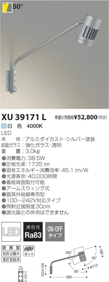 ¥³¥¤¥º¥ß¾ÈÌÀ KOIZUMI LED¥¢¥¦¥È¥É¥¢¥¢¡¼¥à¥¹¥Ý¥Ã¥È¥é¥¤¥È XU39171L