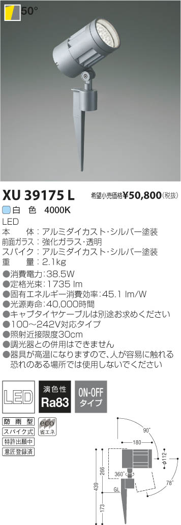 ¥³¥¤¥º¥ß¾ÈÌÀ KOIZUMI LED¥¢¥¦¥È¥É¥¢¥¹¥Ñ¥¤¥¯¥¹¥Ý¥Ã¥È¥é¥¤¥È XU39175L