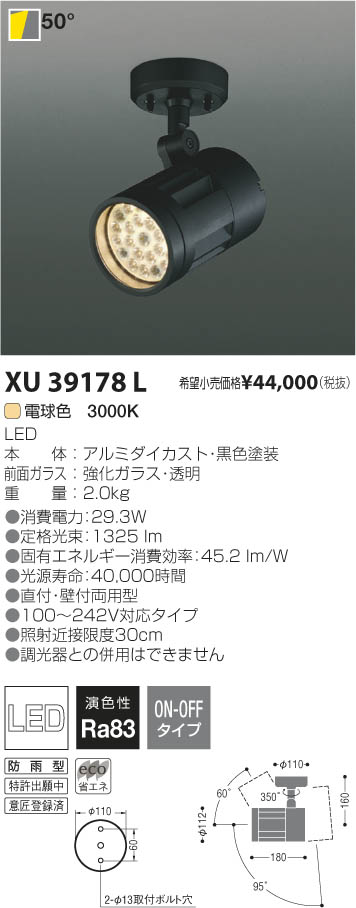 ¥³¥¤¥º¥ß¾ÈÌÀ KOIZUMI LED¥¢¥¦¥È¥É¥¢¥¹¥Ý¥Ã¥È¥é¥¤¥È XU39178L