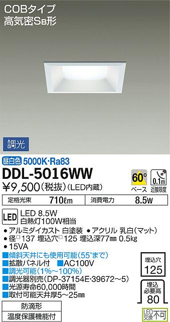 DAIKO Âç¸÷Åŵ¡ LED¥À¥¦¥ó¥é¥¤¥È(¸®²¼·óÍÑ) DDL-5016WW