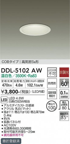 DAIKO Âç¸÷Åŵ¡ ¥À¥¦¥ó¥é¥¤¥È(¸®²¼·óÍÑ) DDL-5102AW