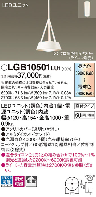 Panasonic LED ¥Ú¥ó¥À¥ó¥È¥é¥¤¥È LGB10501LU1