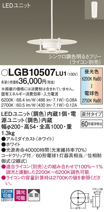Panasonic LED ¥Ú¥ó¥À¥ó¥È¥é¥¤¥È LGB10507LU1