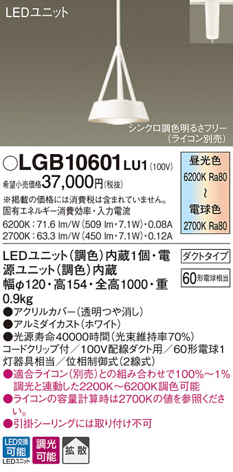 Panasonic LED ¥Ú¥ó¥À¥ó¥È¥é¥¤¥È LGB10601LU1