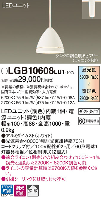 Panasonic LED ¥Ú¥ó¥À¥ó¥È¥é¥¤¥È LGB10608LU1