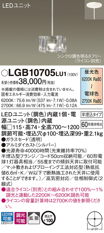 Panasonic LED ¥Ú¥ó¥À¥ó¥È¥é¥¤¥È LGB10705LU1