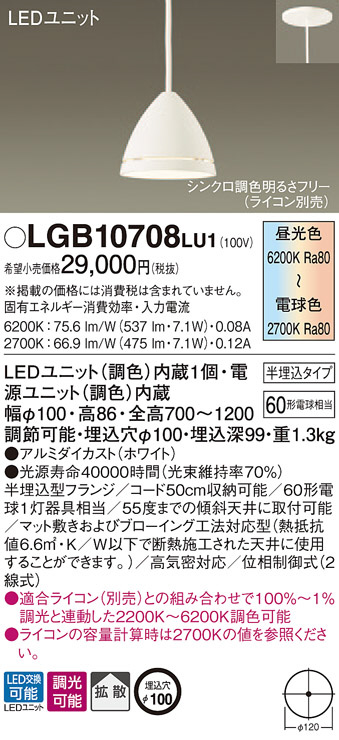 Panasonic LED ¥Ú¥ó¥À¥ó¥È¥é¥¤¥È LGB10708LU1