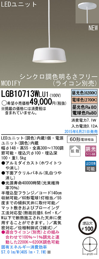 Panasonic LED ¥Ú¥ó¥À¥ó¥È¥é¥¤¥È LGB10713WLU1