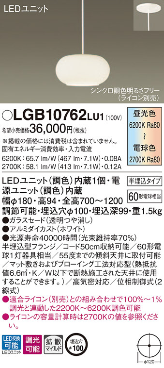 Panasonic LED ¥Ú¥ó¥À¥ó¥È¥é¥¤¥È LGB10762LU1