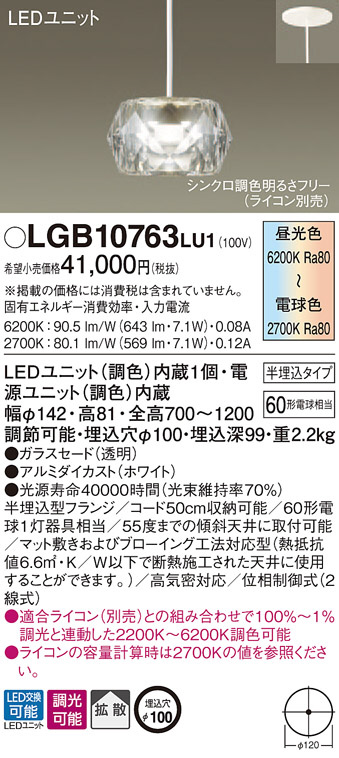 Panasonic LED ¥Ú¥ó¥À¥ó¥È¥é¥¤¥È LGB10763LU1